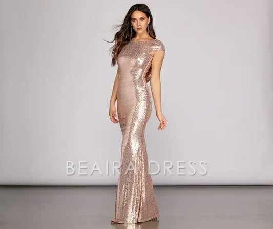 Beaira Elegant Sivan Glam Sequin Dress formal wear dresses - ROSE GOLD