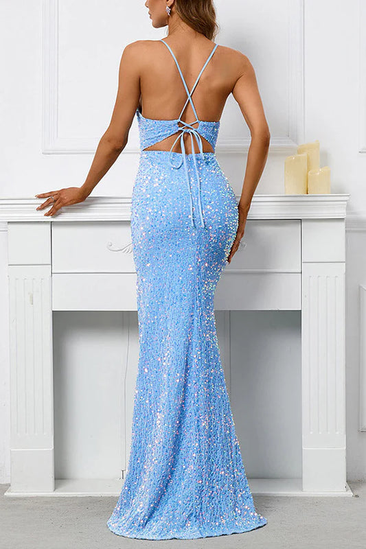 Beaira Elegant Sexy Sky Blue Backless Evening Prom Dresses formal wear dresses - Light Sky Blue