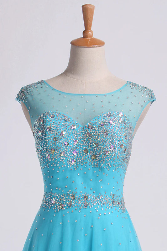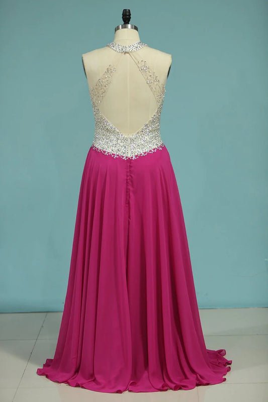 Gorgeous Party Dresses A Line Scoop Chiffon Sweep Train