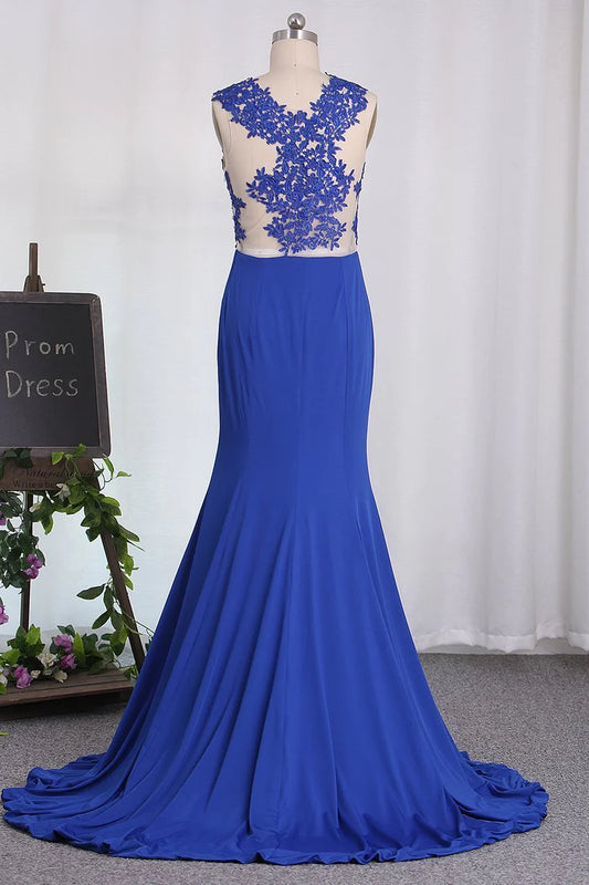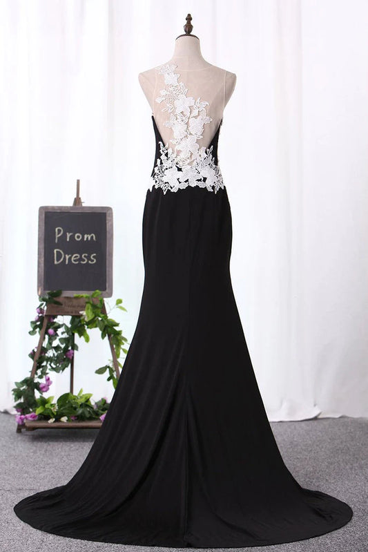 Scoop Party Dresses Mermaid Spandex With Applique Sweep Train