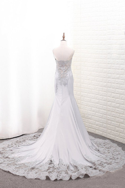 Spaghetti Straps Mermaid Stretch Satin Party Dresses With Applique
