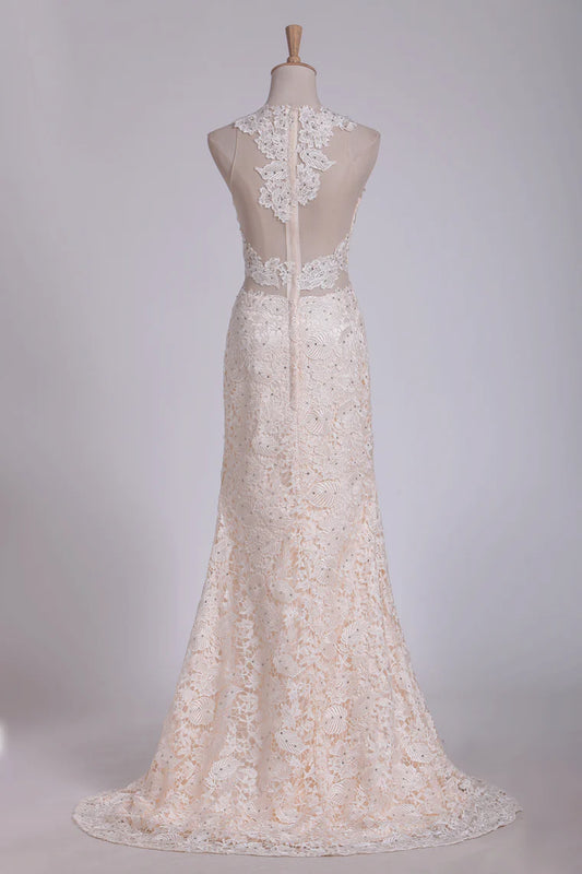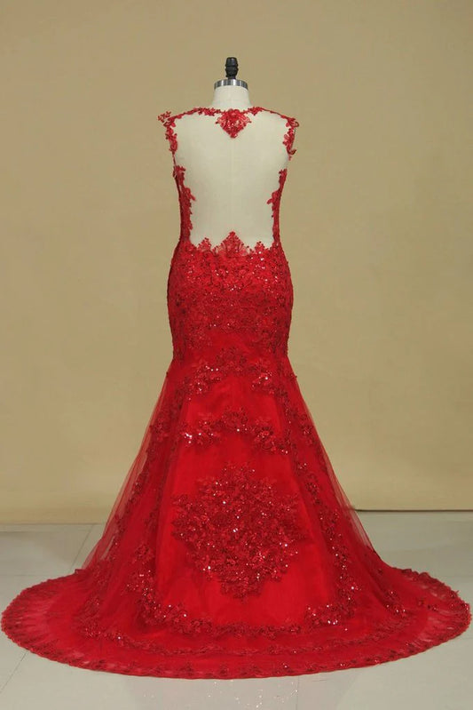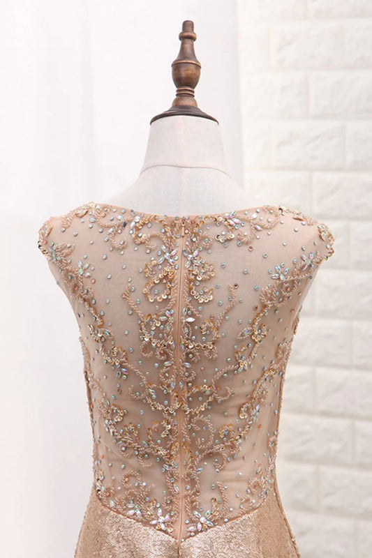 Party Dresses Scoop Mermaid With Beads Sweep Train Lace