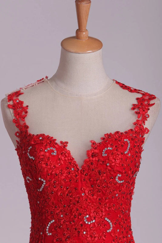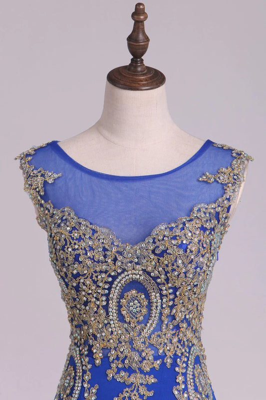 Mermaid See-Through Scoop Party Dresses With Applique Spandex