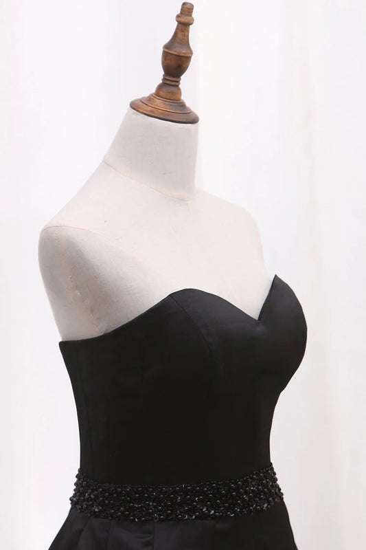 Black Sweetheart Tulle Lace Strapless Beads Party Dresses with Lace up Evening Dresses