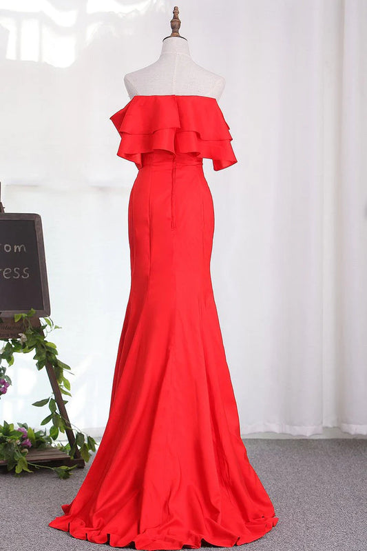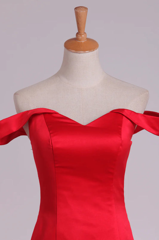 Off The Shoulder Party Dresses Satin Sweep Train Mermaid