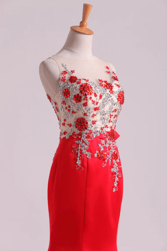 Scoop Party Dresses Mermaid/Trumpet Satin With Applique & Beading