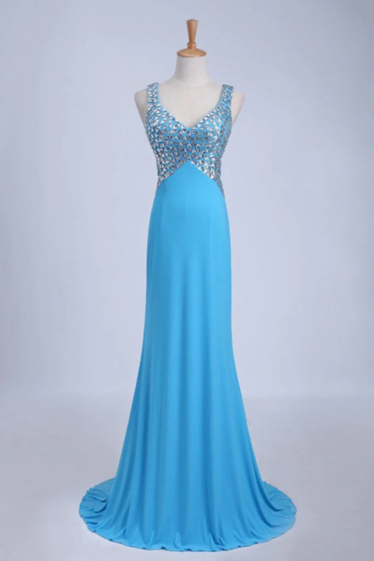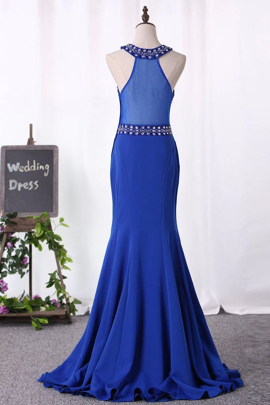 Scoop Mermaid Party Dresses Spandex With Beading Sweep Train