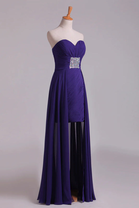 Party Dresses Asymmetrical Train Sweetheart Sheath With Beading Chiffon