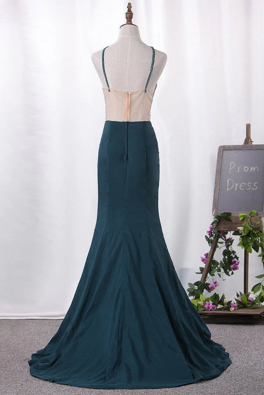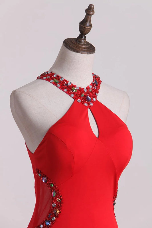 Mermaid Halter Party Dresses Spandex With Beads And Slit