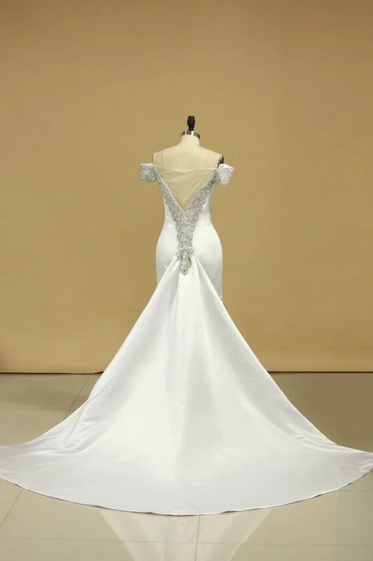 Mermaid Off The Shoulder With Beading Party Dresses Satin