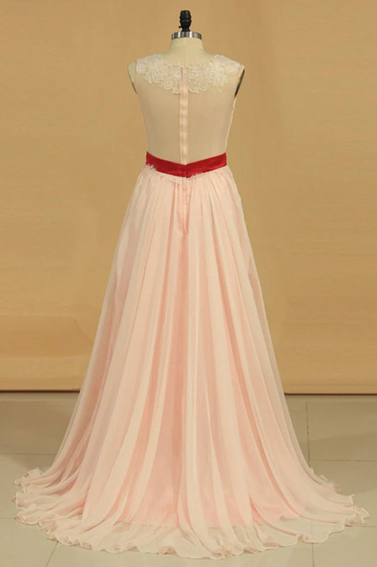Party Dresses A Line Chiffon With Applique Sweep Train
