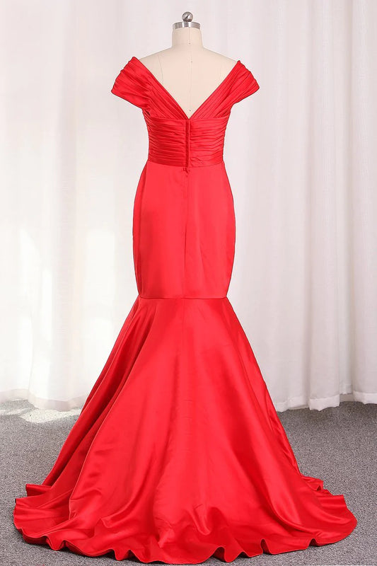 Satin Mermaid Off The Shoulder With Ruffles Party Dresses