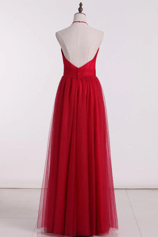 Asymmetrical Halter Organza With Beading A Line Party Dresses