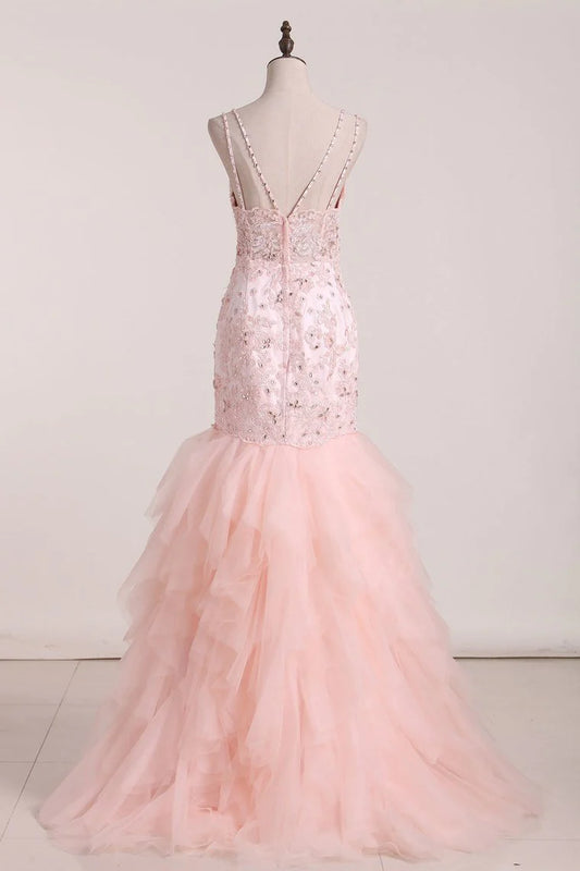 Mermaid Spaghetti Straps Tulle With Applique Party Dresses