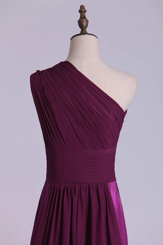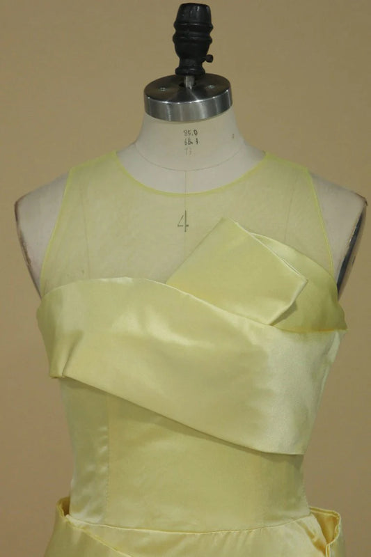 One Shoulder Party Dresses With Ruffles Sweep Train