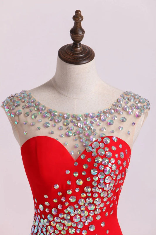 Scoop Column Party Dresses With Rhinestone Chiffon