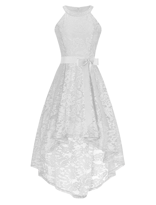 A-Line Special Occasion Dresses Hot Dress Homecoming Graduation Asymmetrical Sleeveless Halter Neck Lace with Sash / Ribbon Bow(s)