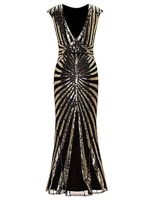 Mermaid / Trumpet Party Dresses Cut Out Dress Wedding Party Semi Formal Floor Length Sleeveless V Neck Sequined with Sequin