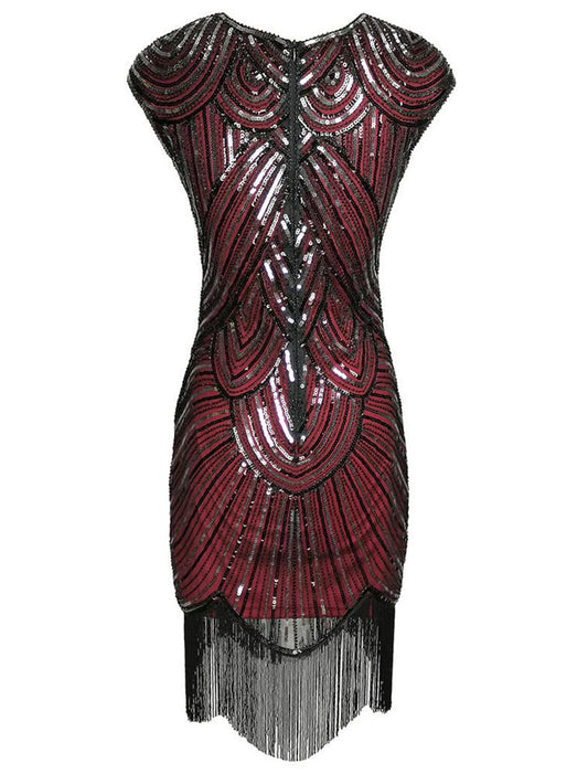 A-Line Cocktail Dresses Vintage Dress Holiday Party Wear Knee Length Sleeveless Jewel Neck Cotton Blend with Fringe Sequin Tassel