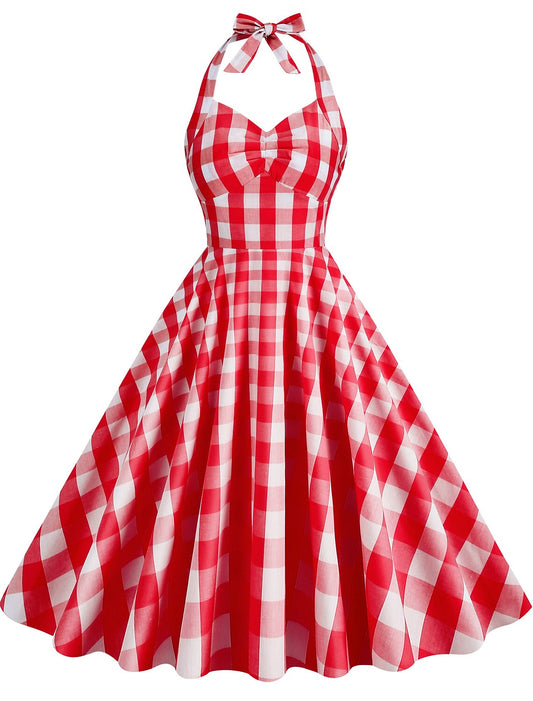 A-Line Party Dresses 1950s Dress Holiday Party Wear Knee Length Sleeveless Halter Neck pink hobbies Dresses Cotton with Bow(s) Pleats