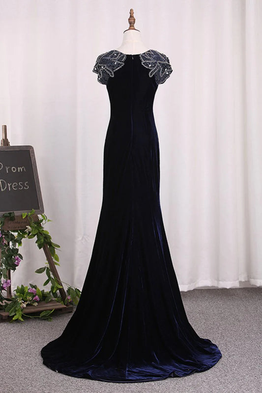 Velvet Scoop With Beading Party Dresses Mermaid Sweep Train