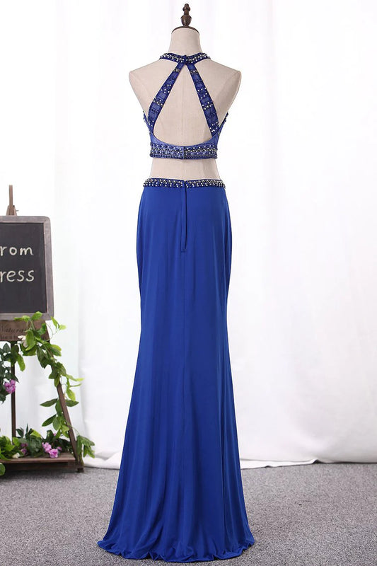 Mermaid Spandex Party Dresses Two-Piece Scoop With Beading