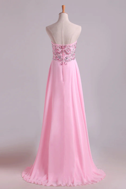 New Party Dresses Sweetheart Chiffon With Beading Floor Length