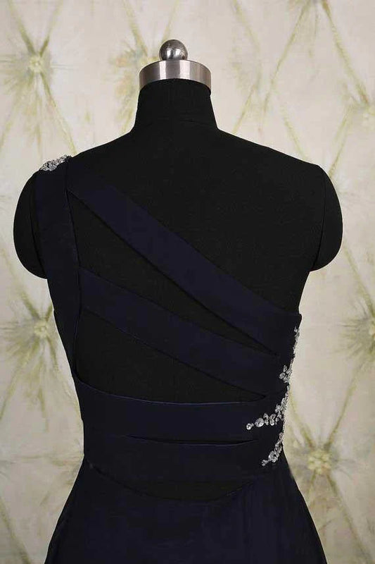 One Shoulder Ombre Black and Blue Ruffles Prom Dresses Simple Cheap Party Dresses