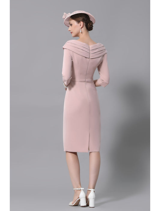 Sheath / Column Mother of the Bride Dress Vintage Plus Size Elegant Scoop Neck Knee Length Jersey 3/4 Length Sleeve with Beading Crystal Brooch