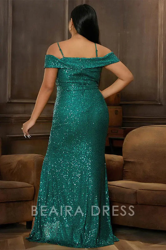 Beaira Plus Size High Split Prom Gown Evening Dresses formal wear dresses - Green