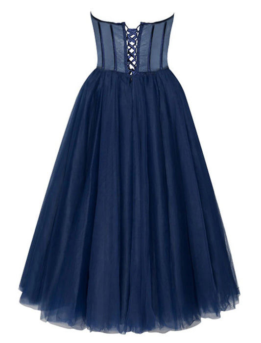 A-Line Cocktail Black Dress Party Dress Cocktail Party Prom Tea Length Sleeveless Sweetheart Fall Wedding Guest Tulle with Pleats