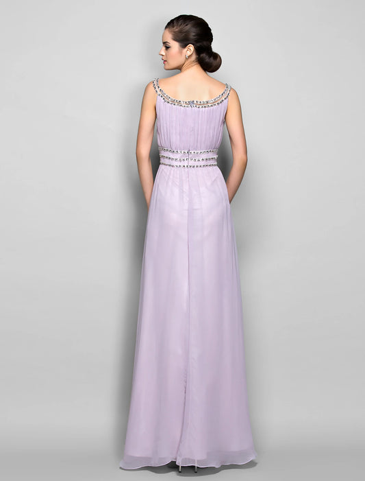 Sheath / Column Open Back Prom Formal Evening Military Ball Dress Scoop Neck Floor Length Georgette with Beading