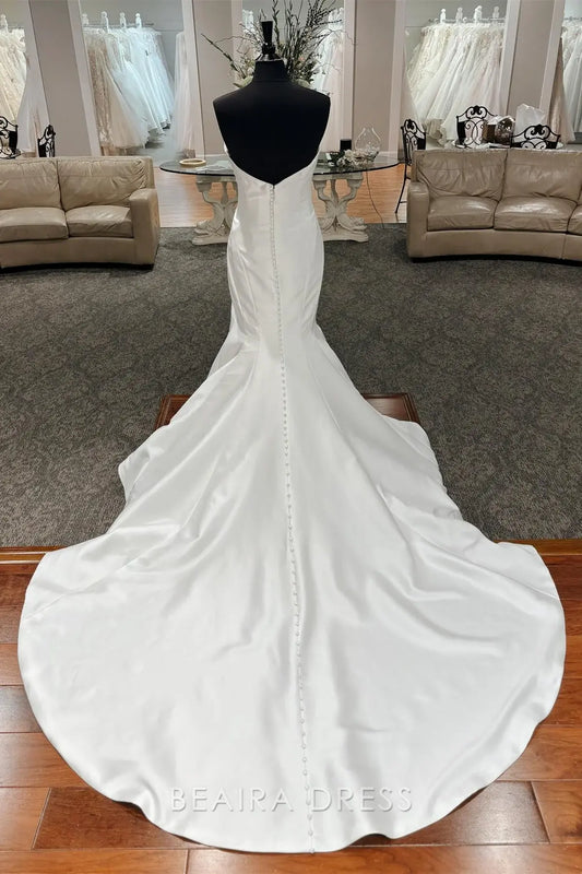 Beaira Elegant Strapless Sweetheart Neckline Mermaid Wedding Dress with Draped Bodice and Satin Train for Timeless Bridal Elegance