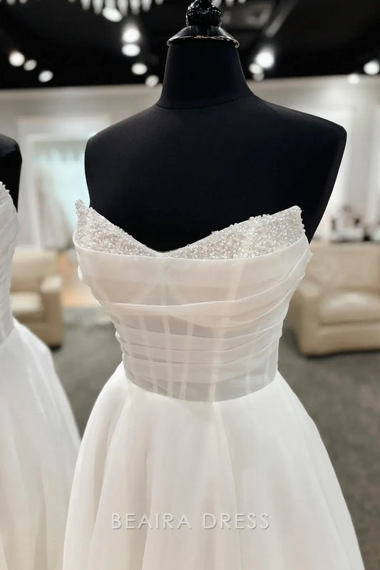Beaira Elegant Strapless Sweetheart Neckline Wedding Dresses with Sheer Corset Bodice and Beaded Detailing for Ethereal Bridal Charm