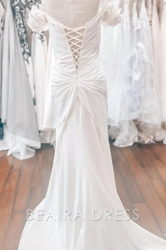 Beaira Elegant Off - the - Shoulder Mermaid Wedding Dress with Beaded Sweetheart Neckline and Draped Bodice for Romantic Bridal Grace