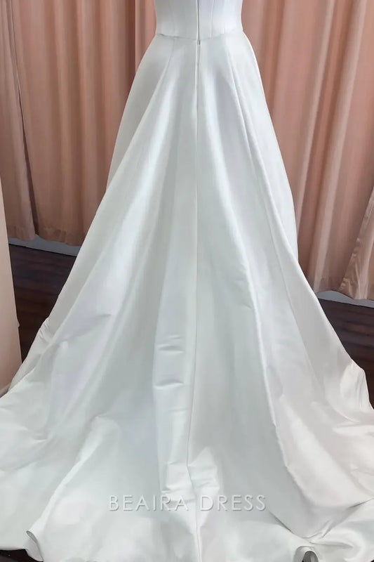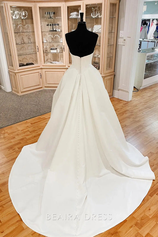 Beaira Elegant Strapless Ball Gown Wedding Dress with Structured Bodice and Satin Skirt for Timeless Bridal Elegance