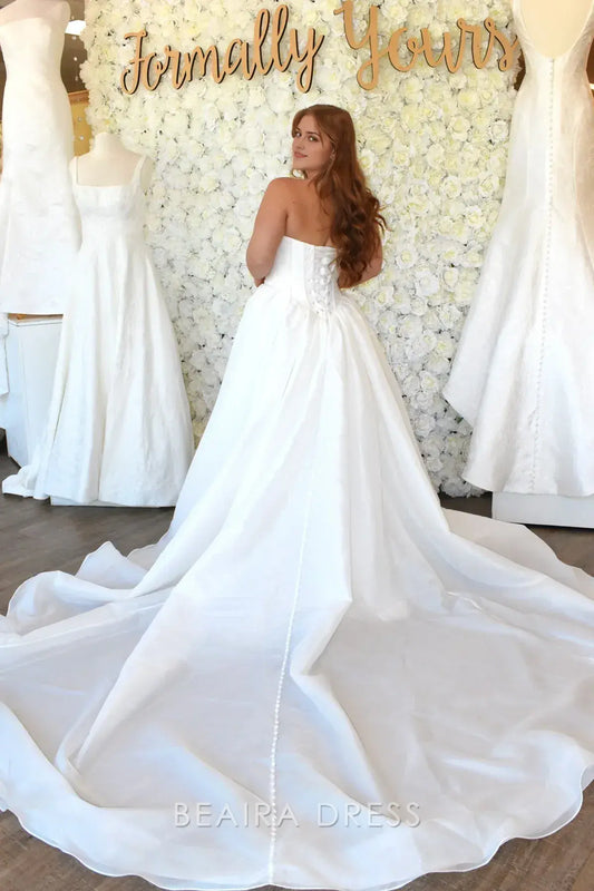 Beaira Elegant Strapless Ball Gown Wedding Dress with Corset Bodice and Organza Skirt for Timeless Bridal Grandeur