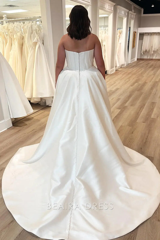 Beaira Elegant Strapless Ball Gown Wedding Dress with Structured Bodice and Flowing Satin Skirt for Timeless Bridal Grace