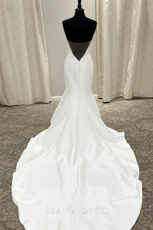 Beaira Elegant Strapless Mermaid Wedding Dress with Cut - Out Detail at Plunging V - Neckline for Modern Bridal Sophistication