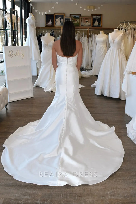 Beaira Elegant Strapless Mermaid Wedding Dress with Draped Bodice and Satin Train for Elegant Bridal Sophistication