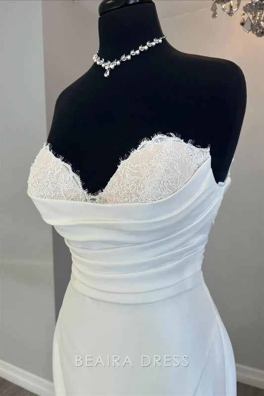 Beaira Elegant Strapless Mermaid Wedding Dress with Lace Sweetheart Bodice and Ruched Waist Detail for Romantic Bridal Style