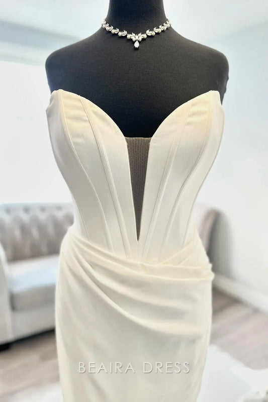 Beaira Elegant Strapless Sweetheart Neckline Mermaid Wedding Dress with Plunging V - Front and Draped Skirt for Modern Bridal Allure