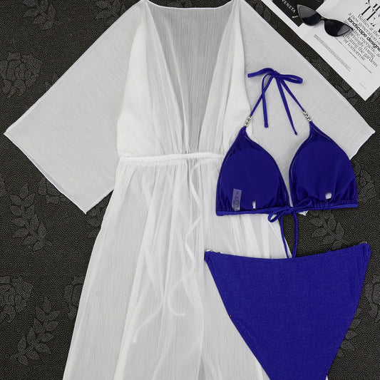 Beaira European and American solid color split swimsuit women's sexy new bikini three piece set swimsuit women's bikini