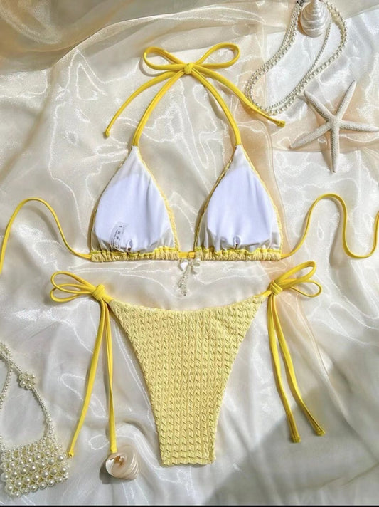Beaira European and American women's solid color swimsuit sexy triangle bikini split swimsuit