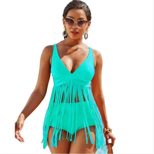 Beaira European and American cross-border new women's split swimsuit solid color plus fringe sexy bikini swimsuit