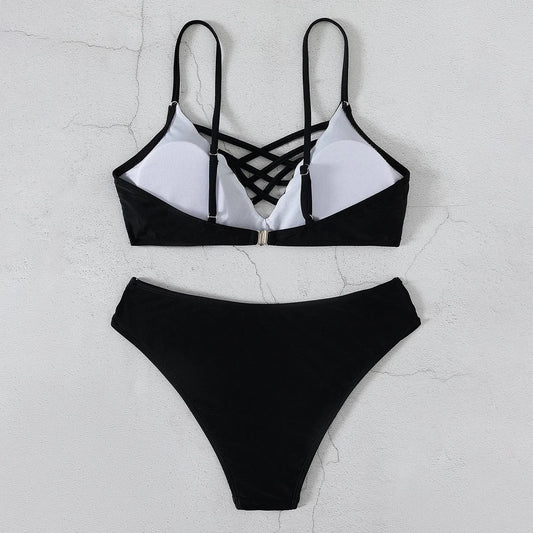 Beaira New Bikini European and American Solid Color Cross border Split Women's Swimsuit Strap up Swimsuit