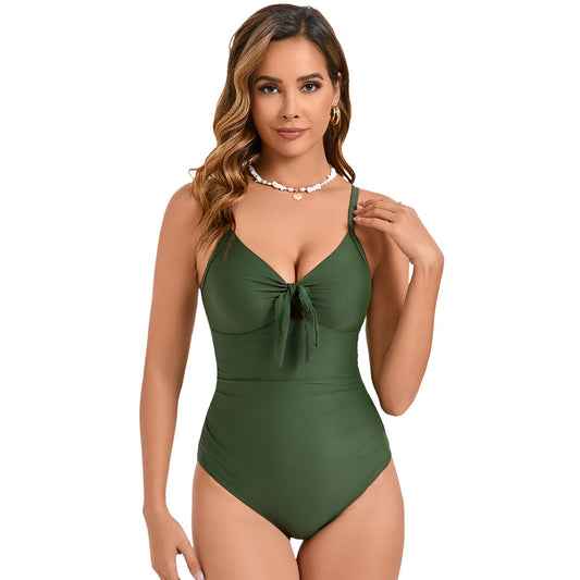 Beaira New European and American solid color bow one-piece swimsuit women's cross-border foreign trade sexy slimming bikini swimsuit