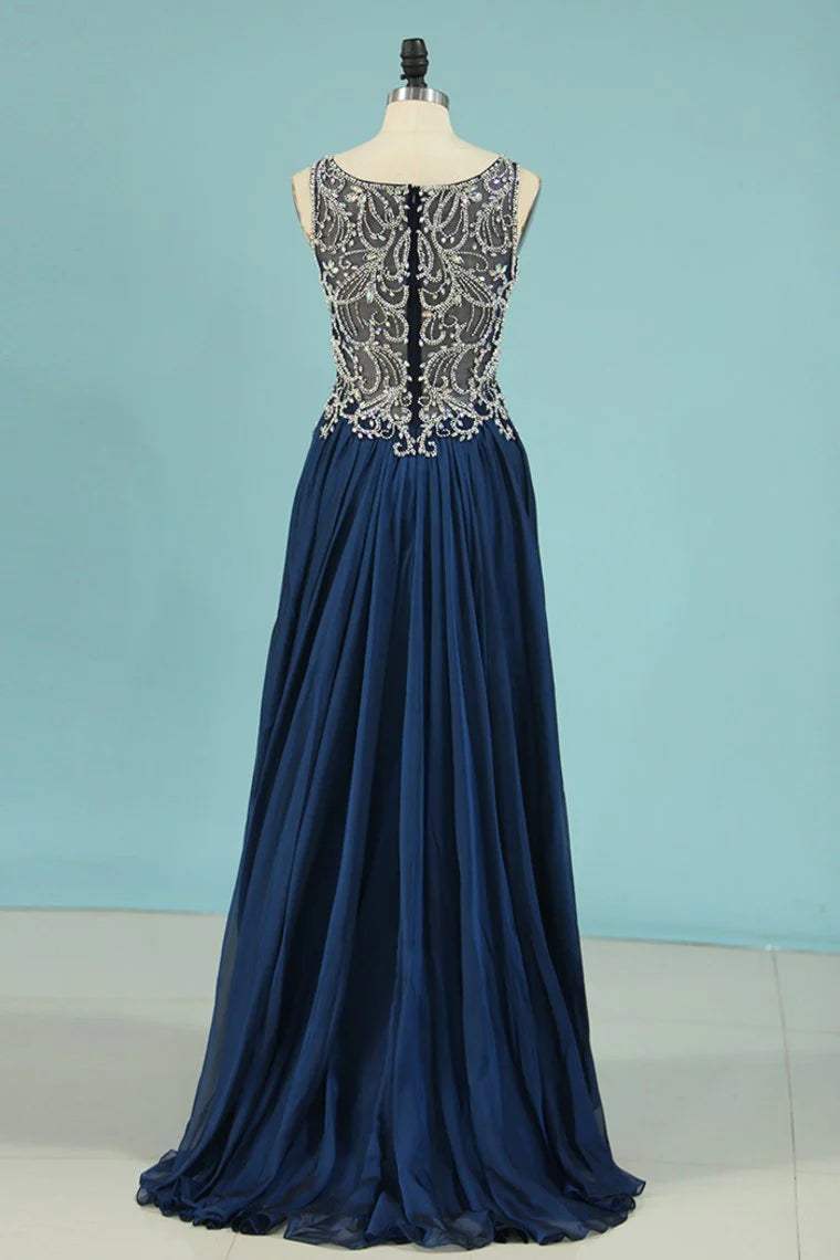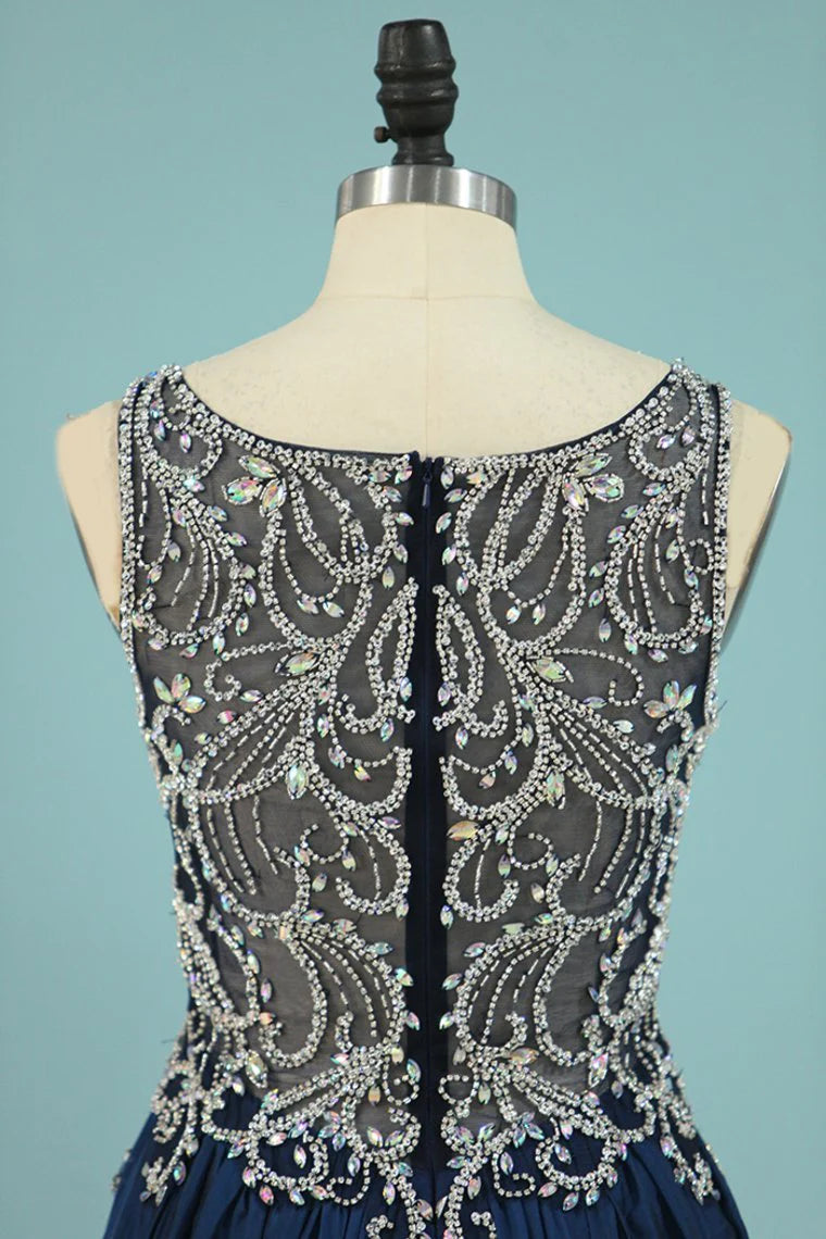 A Line Party Dresses Scoop Chiffon With Beading Sweep Train