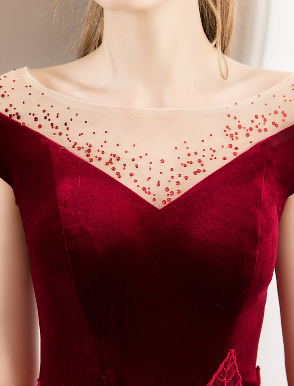 A-Line Prom Dresses Glittering Dress Engagement Prom Floor Length Short Sleeve Jewel Neck Tulle with Pleats Crystals Pattern