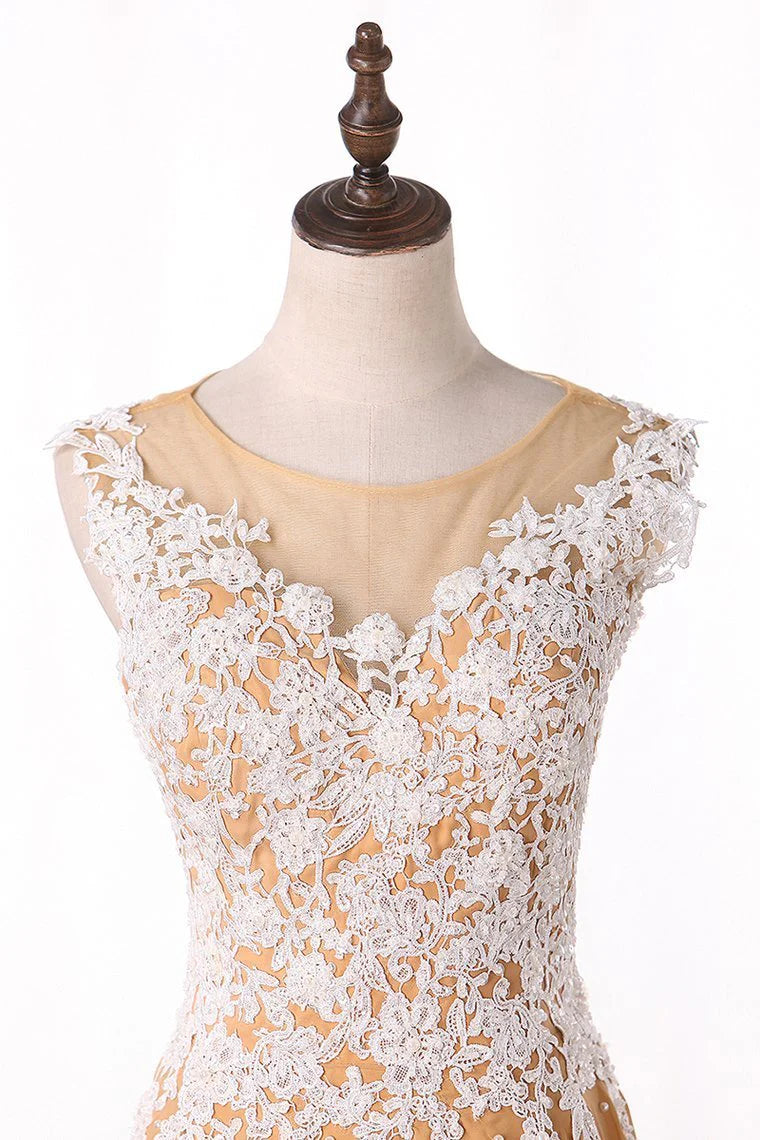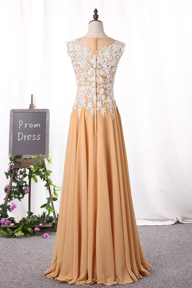 A Line Scoop Party Dresses Chiffon With Applique Floor Length